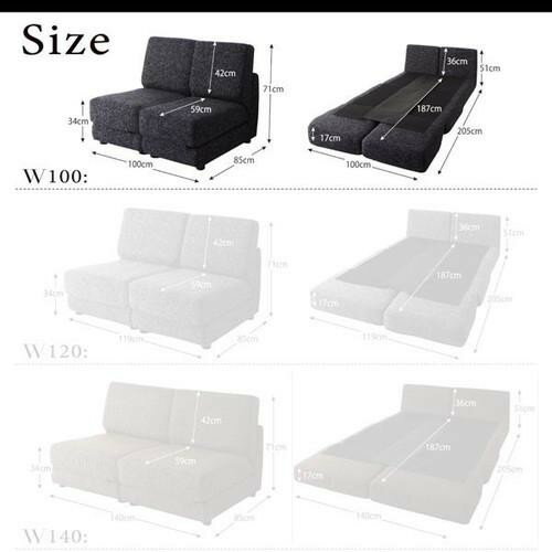 モダンデザインソファベッド【サイズ】●ソファ時:W100cm:(約)幅100 奥行85(座面奥行59) 高さ71(座面高34) cm●ベッド時:W100cm:(約)幅100 奥行205(マット部分奥行187) 高さ51(マット部分厚み17) cm【素材】本体張り地:ポリエステル、ナイロン、不織布中材:天然木、ウレタンフォーム、チップウレタン、ウェービングベルト脚:ポリプロピレン【カラー】グレー、ブラウン、ダークネイビー【生産国】中国※1年保証付き※各サイズ・重量は概算になります。
