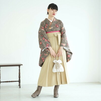 【販売用ページ】2尺袖着物 袴 2点セット 袴91cm-99cm(適応身長約153-170cm) 袴セット 卒業式 国産生地 大学生 女性 チェック 販売 購入 ベージュ系 女性ピンク 黒 緑 ブラウン 千鳥格子 花 重ね衿縫い付済 洋風 かわいい くすみカラー 専門学校 卒服 卒業式