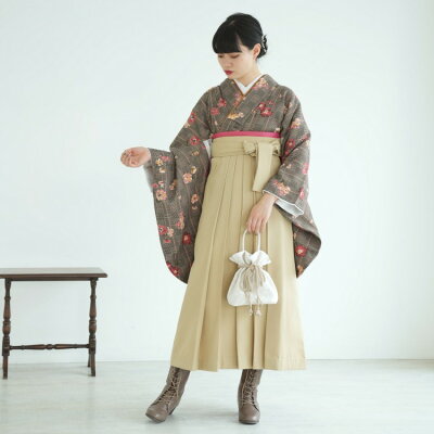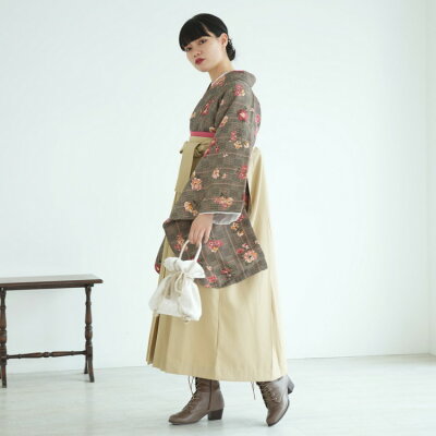 【販売用ページ】2尺袖着物 袴 2点セット 袴91cm-99cm(適応身長約153-170cm) 袴セット 卒業式 国産生地 大学生 女性 チェック 販売 購入 ベージュ系 女性ピンク 黒 緑 ブラウン 千鳥格子 花 重ね衿縫い付済 洋風 かわいい くすみカラー 専門学校 卒服 卒業式